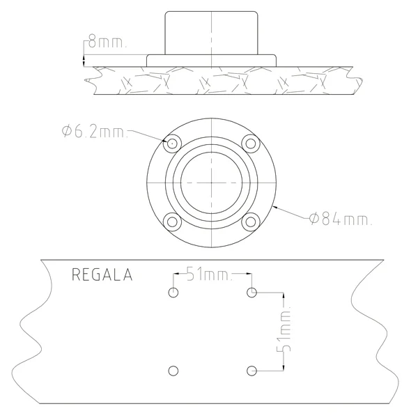 monta sobre la regala inox maciza.