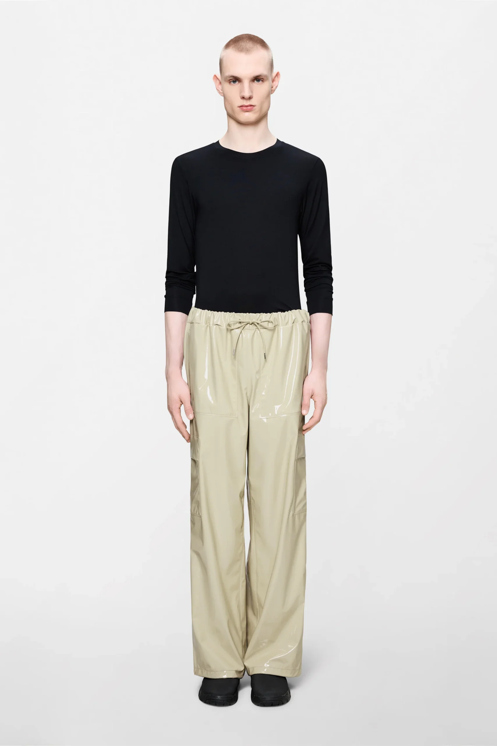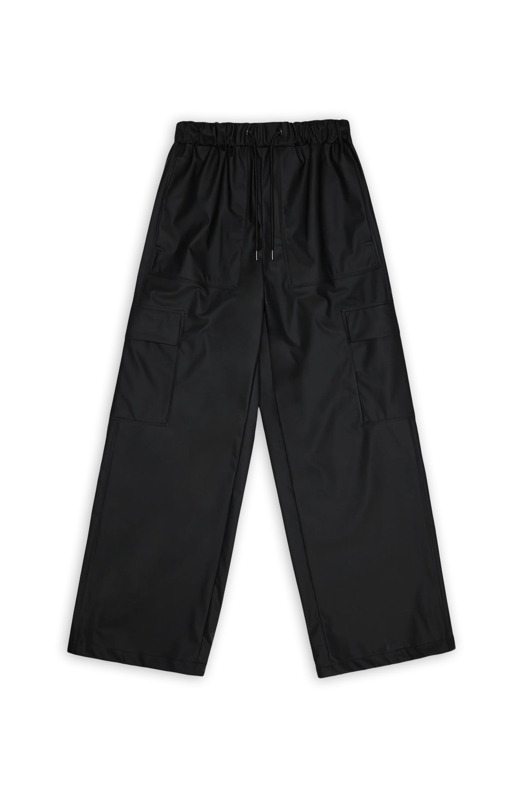 Cargo Rain Pants Wide están confeccionados en el tejido de PU característico de Rains con costuras soldadas. Su acabado es ligero y de tacto suave.
