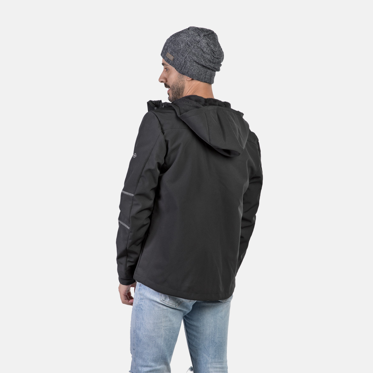 - Tejido Soft Shell y AWPS: Membrana cortavientos, resistente al agua, térmico y transpirable.