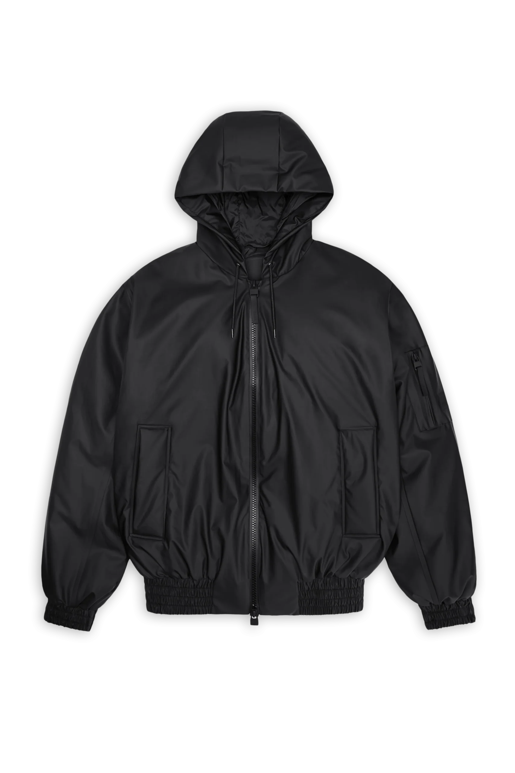 Lohja Insulated Bomber Jacket está confeccionada en el tejido de PU característico de Rains y se completa con costuras de doble sellado. El resultado es una prenda ligera de tacto suave.