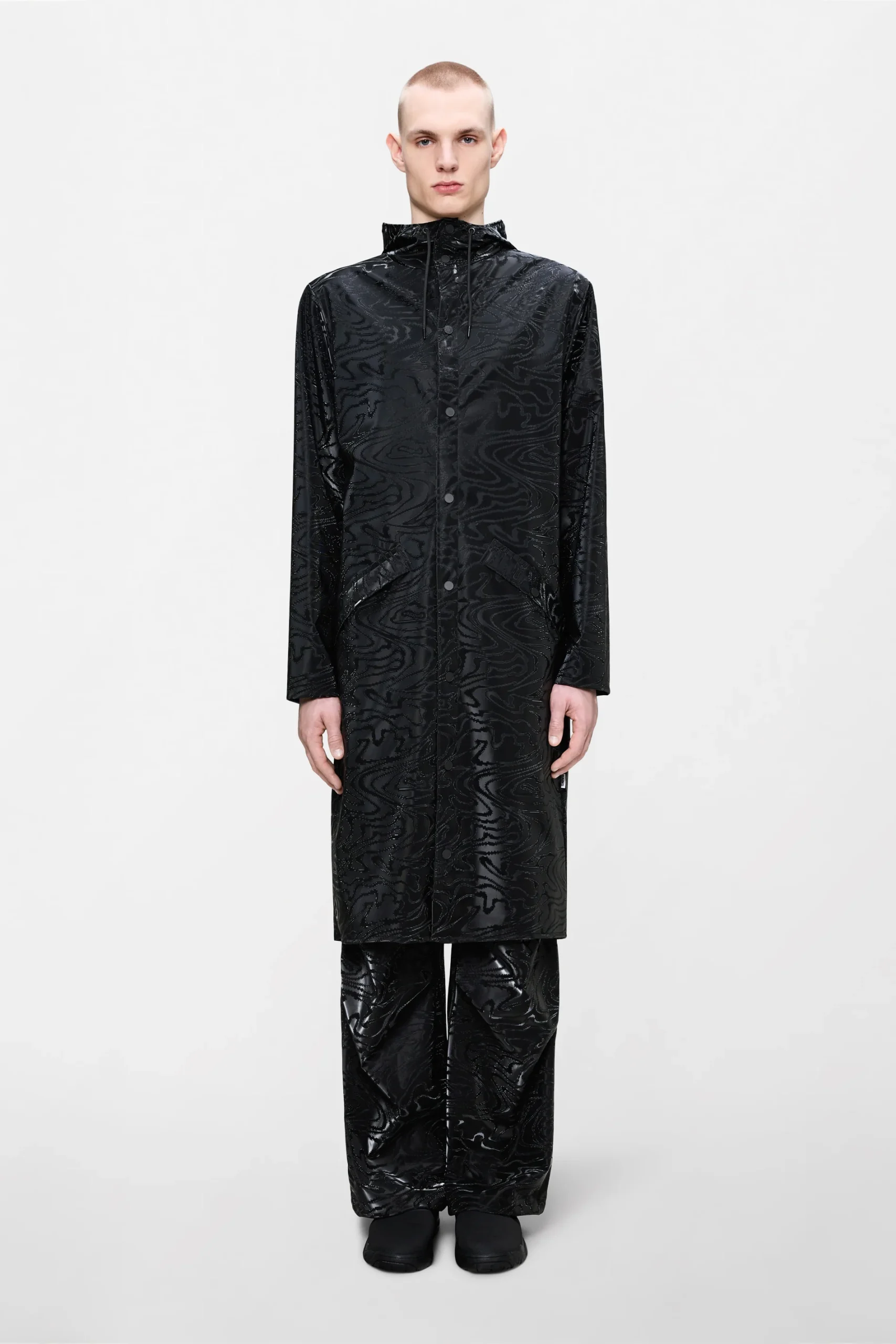 Longer Jacket está confeccionada en el tejido de PU característico de Rains con costuras selladas. Su acabado es ligero y de tacto suave.